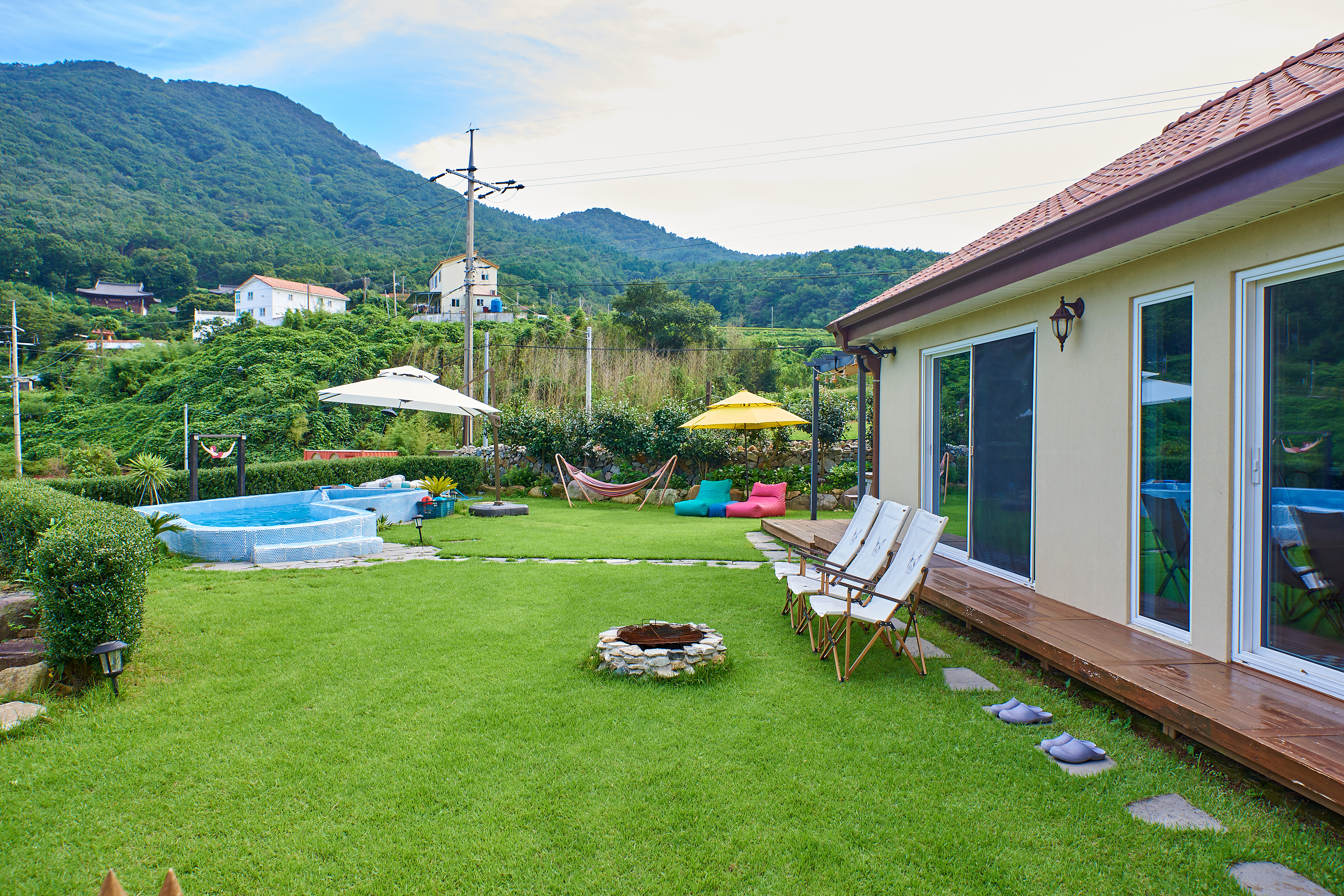 프라이빗 정원과 수영장이 연결된 따뜻한 공간에서